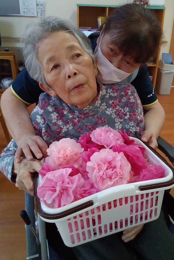 「色がきれいじゃない!」「意外と難しいのね」と話しながらもかごいっぱいのお花が完成しました!