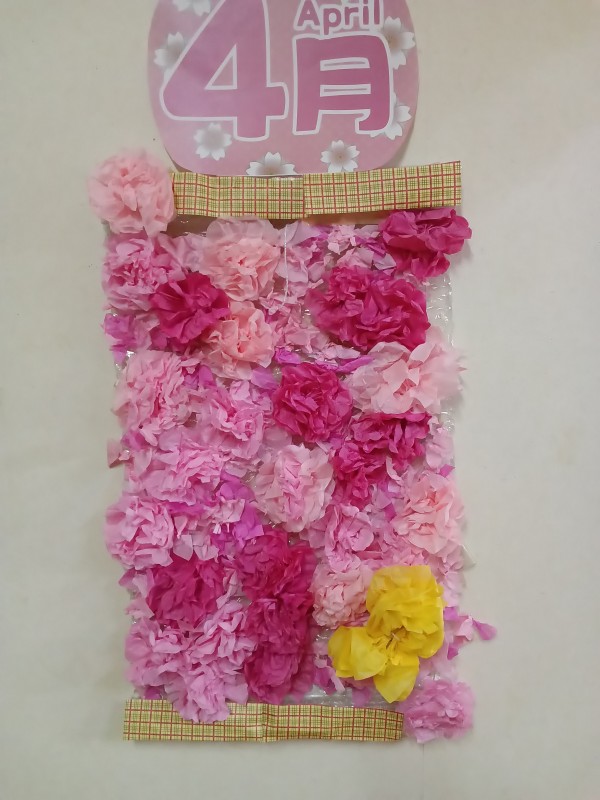 春の訪れとともに、本日は4月の壁面作成の様子をご紹介したいと思います。