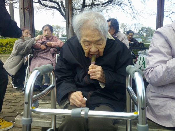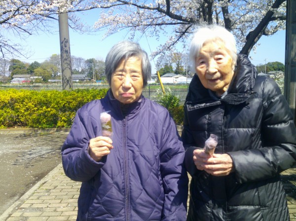 外で桜を見ながら串にささっている桜餅を美味しそうに召し上がっておりました(*^^)v