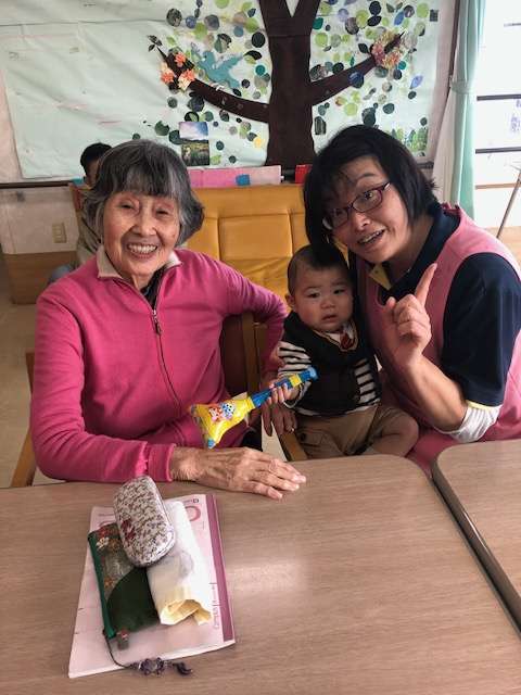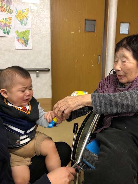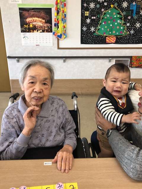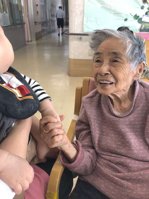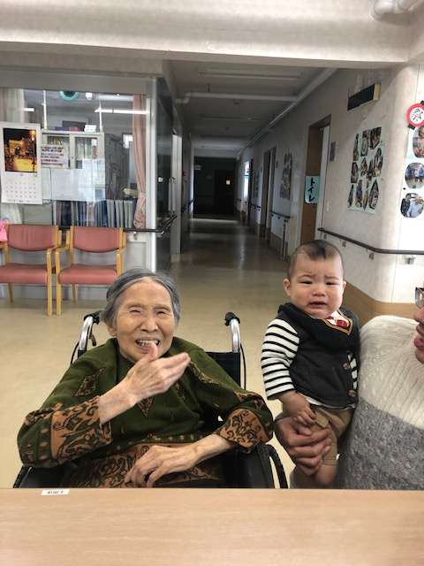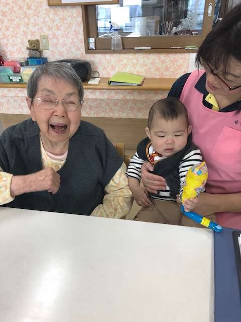 利用者様も抱っこの挑戦をしますが、「重たいね~」と