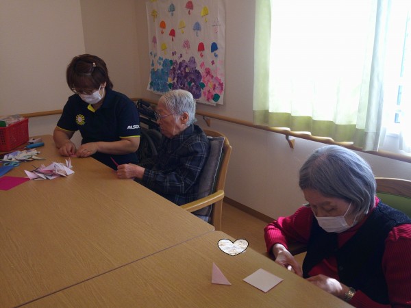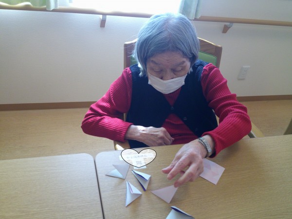黙々と一心に花びらを折っています。