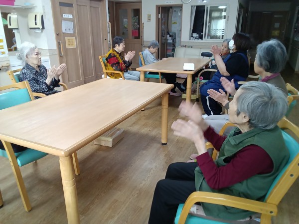 お食事前には各フロアで口腔体操を含めた食前体操に参加していただいてます。