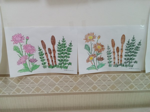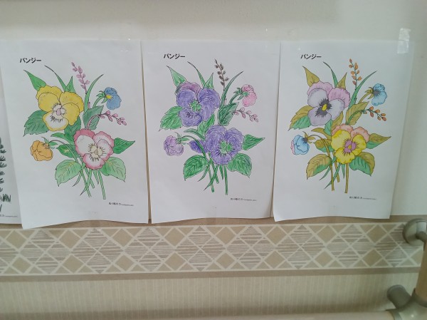 春の塗り絵も飾りました。