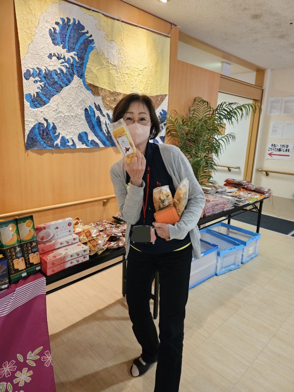 北海道のお菓子や食品、またお洋服等を大量に持って来てもらい、1Fに展示。