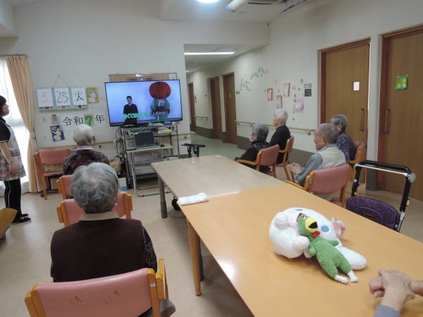 歌に合わせて体を動かすよ☆皆さん上手に体操しております。