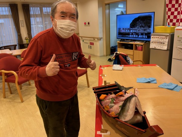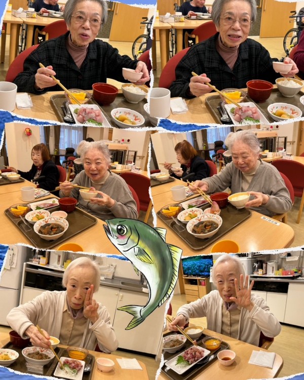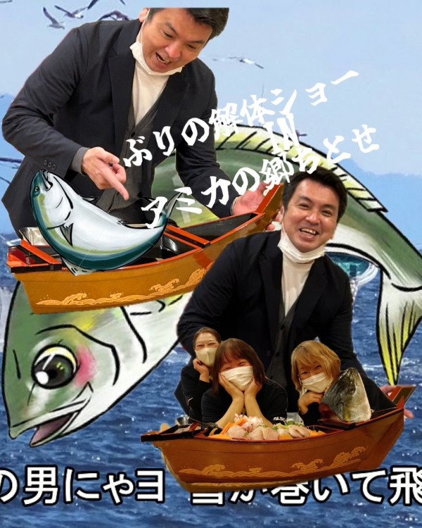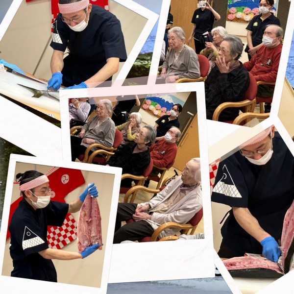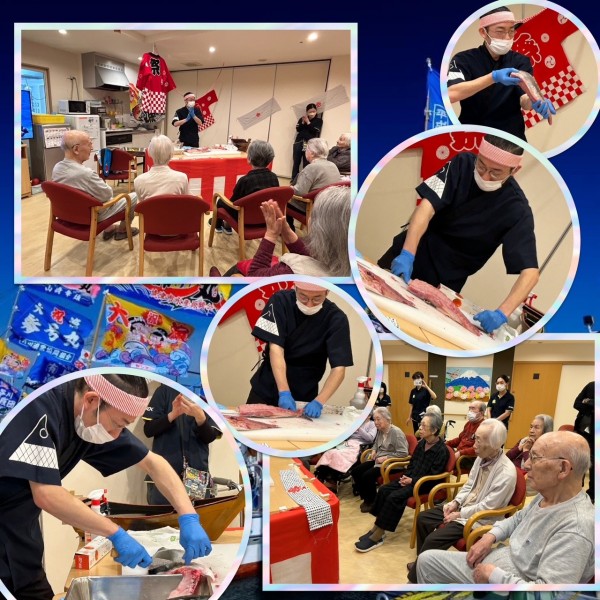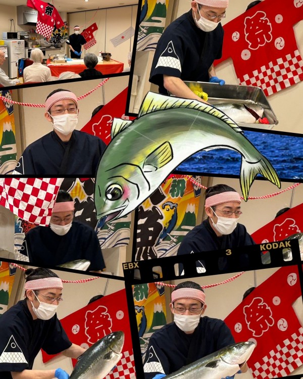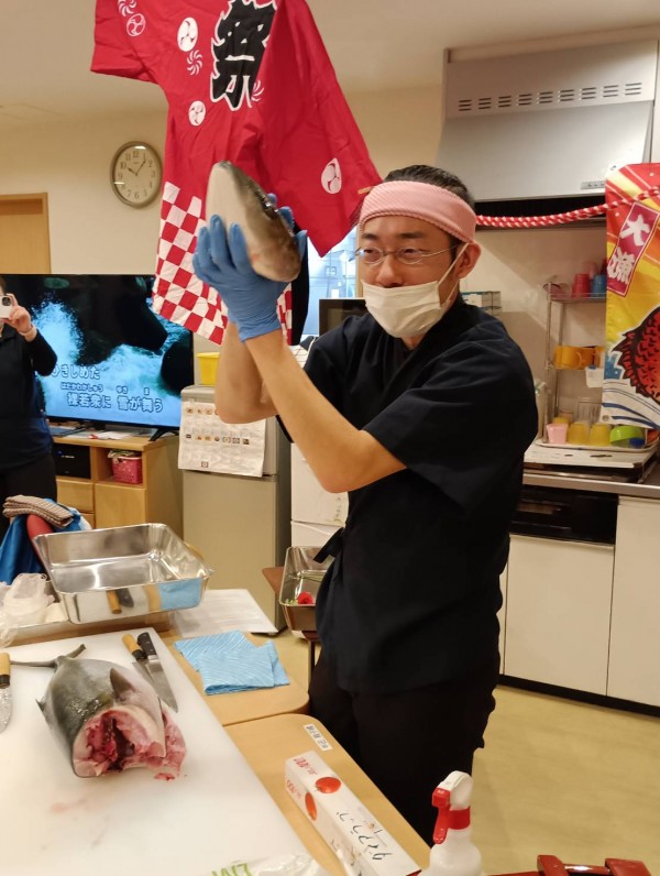 【アミカの郷ちとせ】楽しみにしていた、鰤の解体ショー( *^-^)ρ(^0^* )が開かれました。