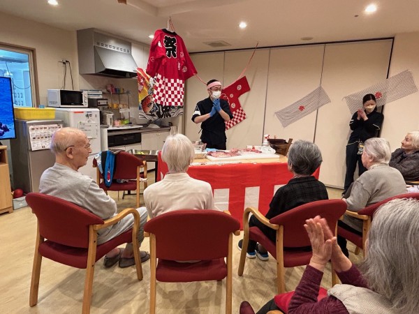 お茶目なホーム長が1番わくわく‼️楽しみにしている様子で、その楽しさが伝わりみなさまの笑顔と笑いを誘っていました。