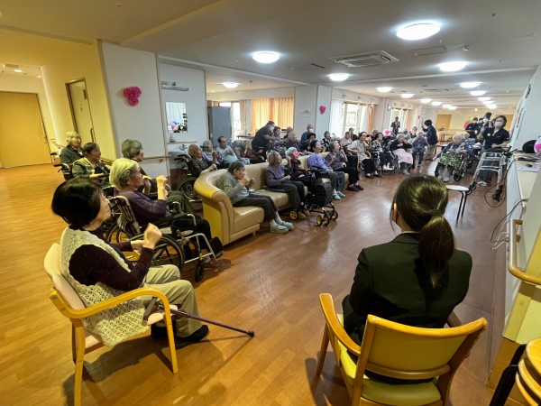 ご入居者様達の声が素晴らしく響き渡り、それはもう感動する歌声に