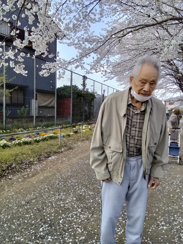 なかなか満開に合わせられなくて、今日は満開だね。と喜んでいました。
