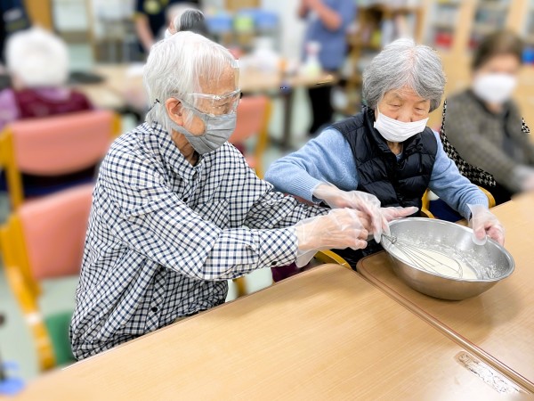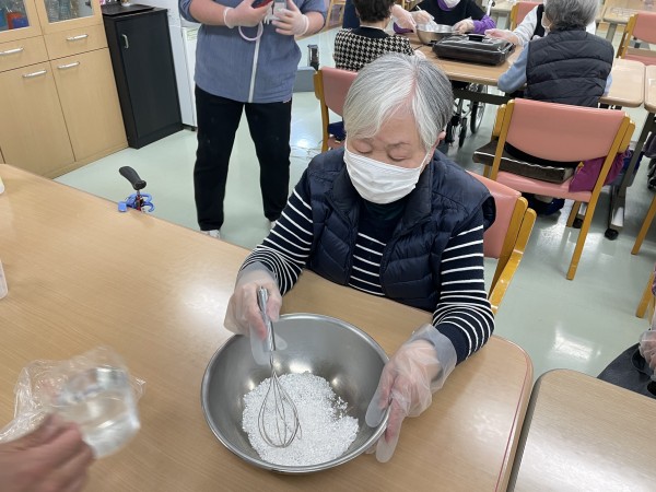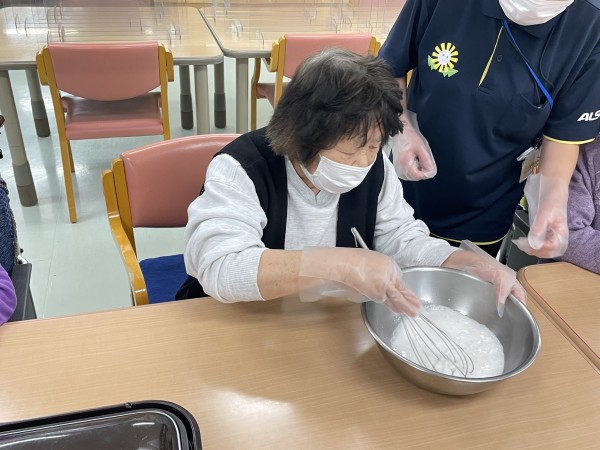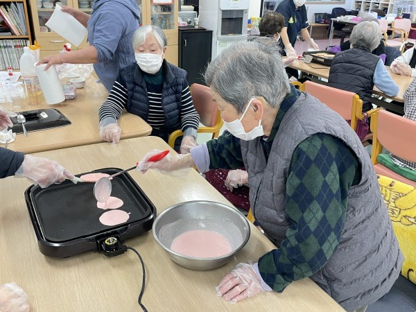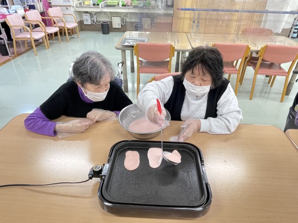 - 生地が出来たら、低温のホットプレートで焦げないように焼いたら
