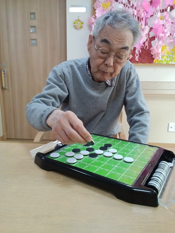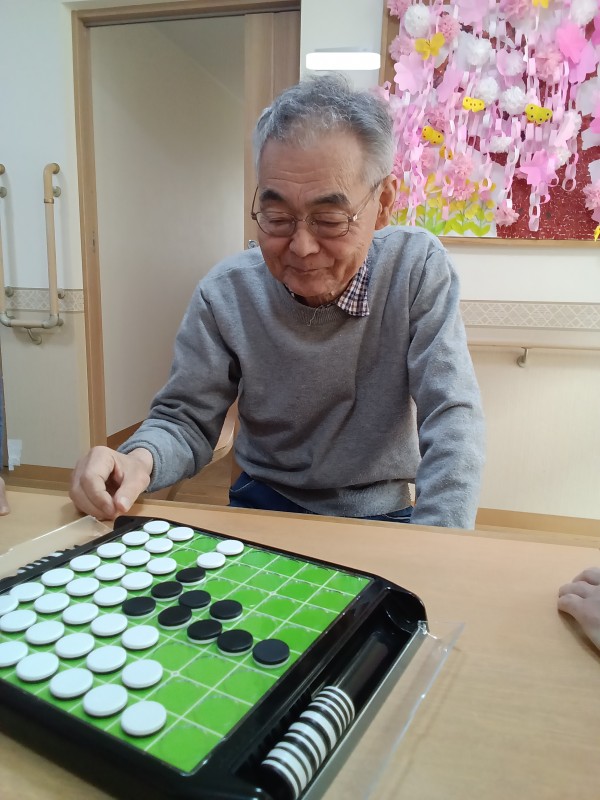 オセロゲームを職員と一緒に挑戦されてます。