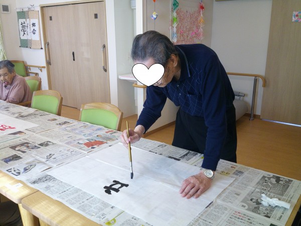 入居者様と一緒に習字(字)の練習を行いました(^^)/