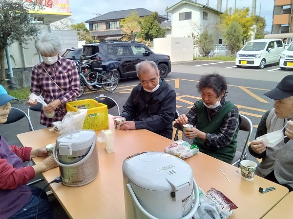 2025.4.7㈪ラジオ体操後にせせらぎ前の駐車場で青空サロンを開催しました。