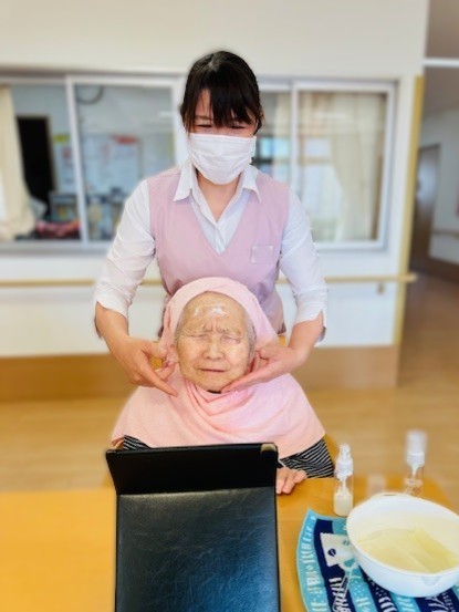シニアセラピーの施術を受けて幸せそうにしていた利用者様を発見!
