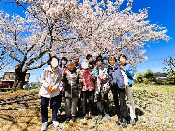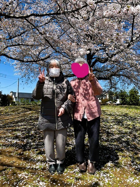 みんなで、桜を堪能(。-_-。)フフフッ! (注目)ホーム長だけ一人お留守番!ごめんなさいね…