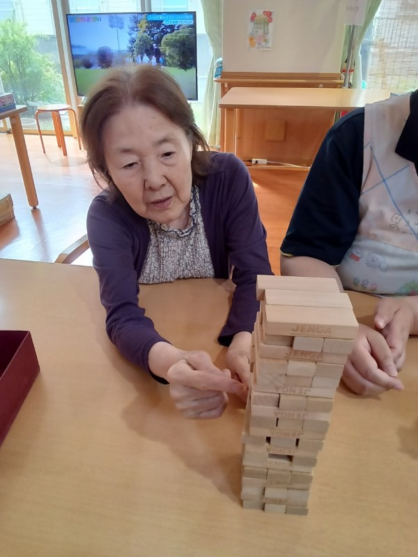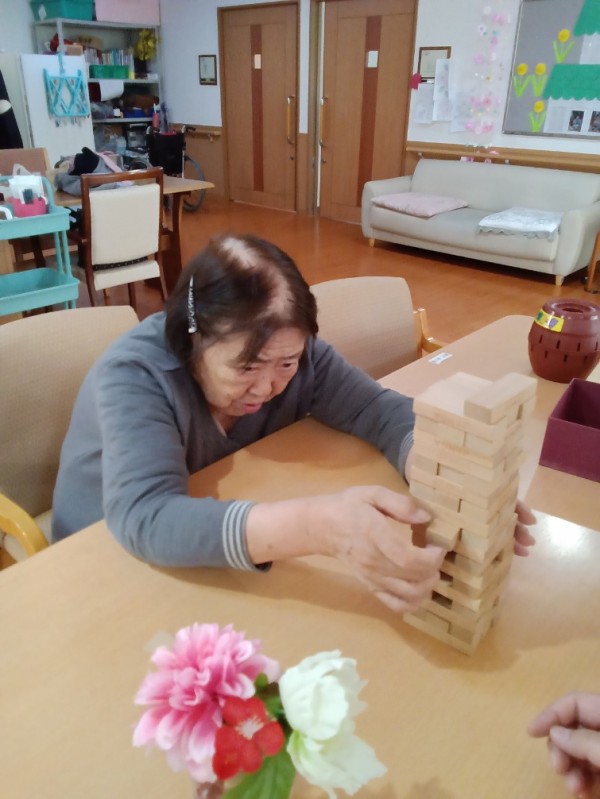 今回は、午後のレクの時間に行ったジェンガの様子をお届けします(^▽^)