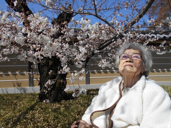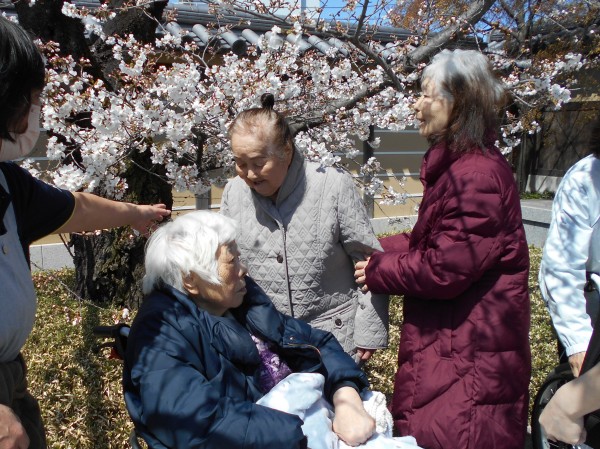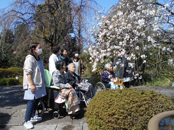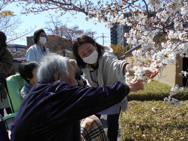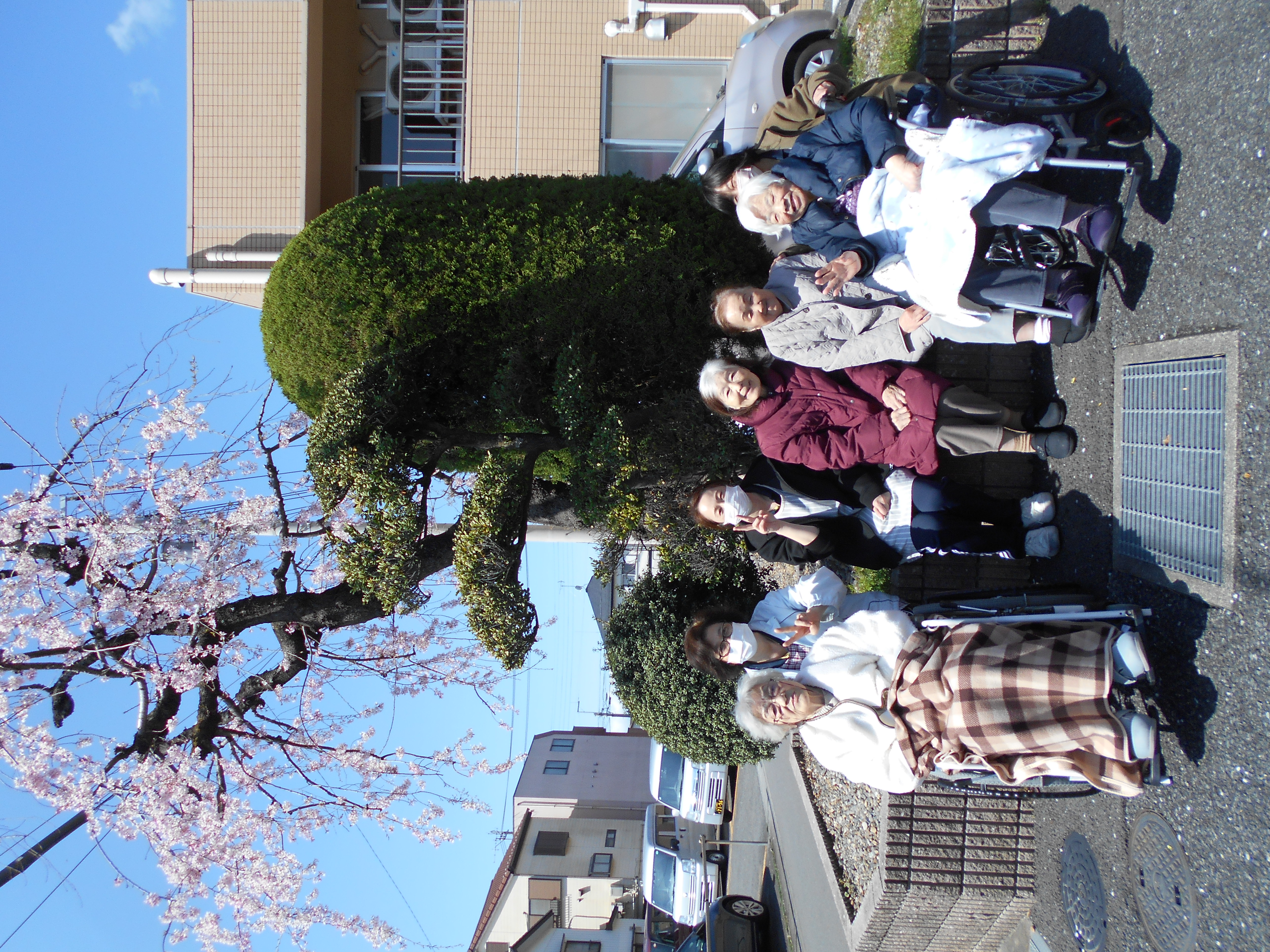 先にホームの敷地内にある枝垂れ桜へ向かいます(*^^*)
