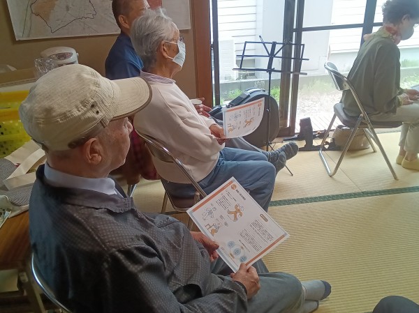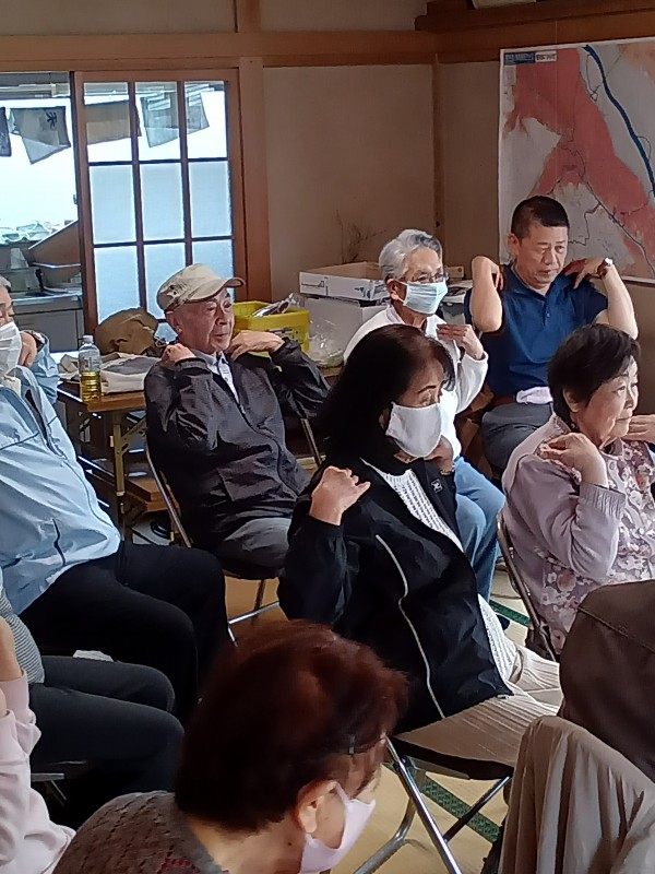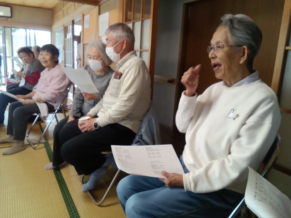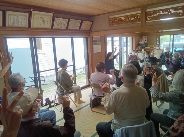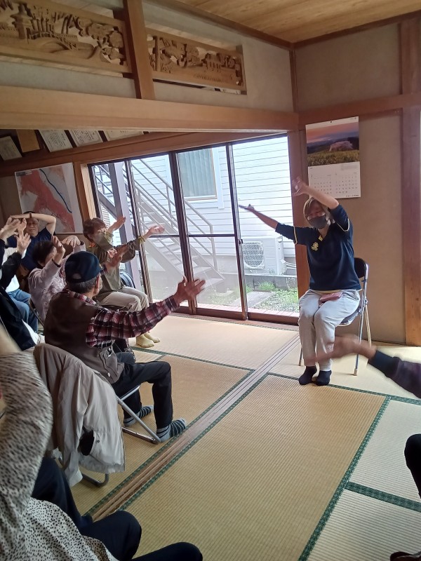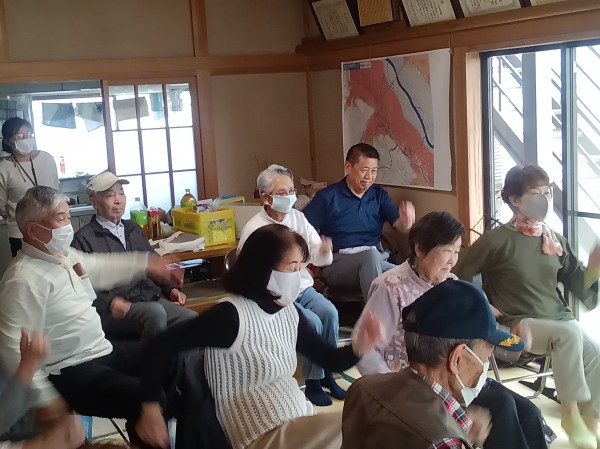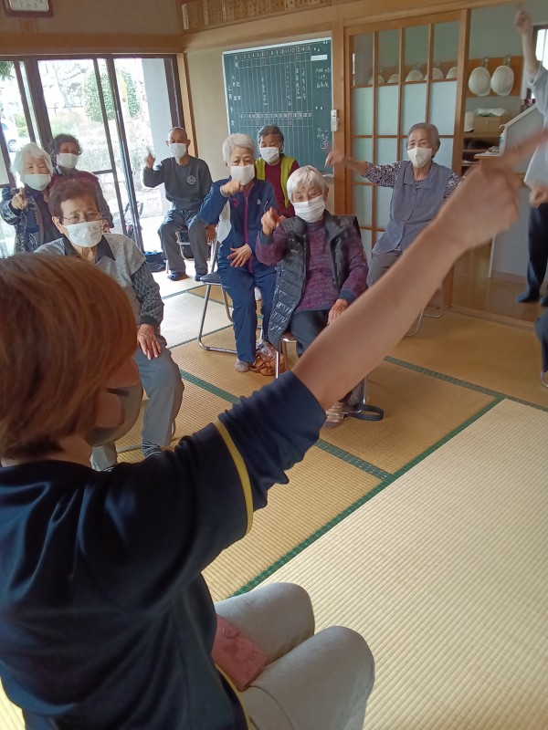 前回ご紹介した「北国の春」の他、「上を向いて歩こう」の曲に合わせて体操しました。