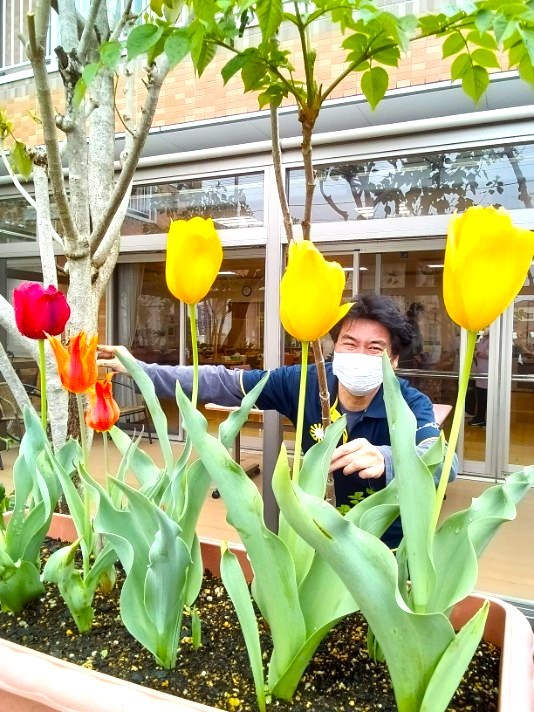 当施設のドライバースタッフが丹精込めて育てたチューリップがとてもきれいに咲きました☆