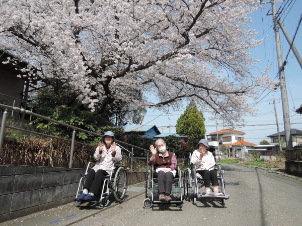 施設のご近所に立派な桜の木があります。天気にも恵まれてみんなで一緒にお花見をしてきました(*´з`)