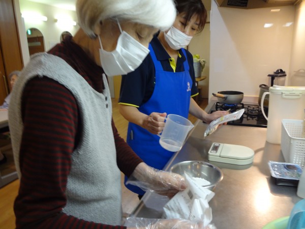 コネて棒状に伸ばしたものを一口大に分けていきます。