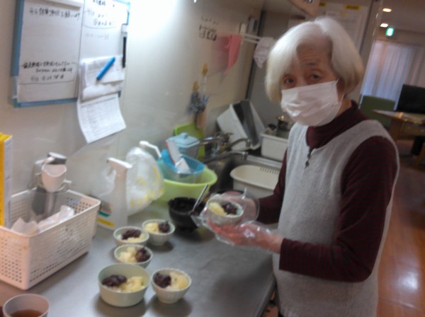 白玉粉があったので、あんことフルーツを添えてどうかしら?