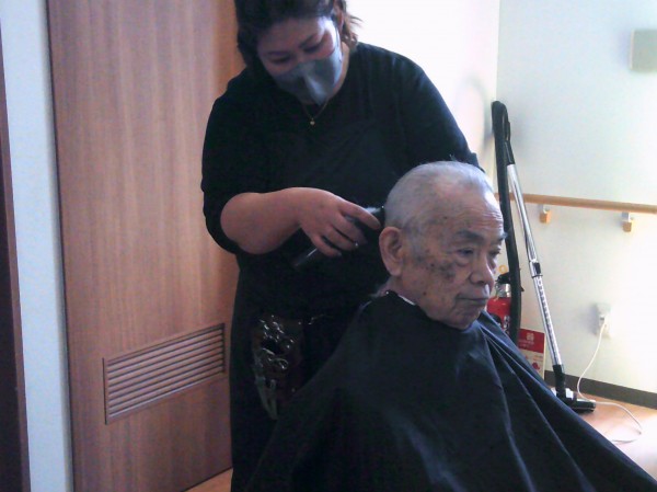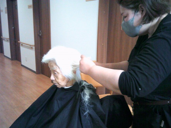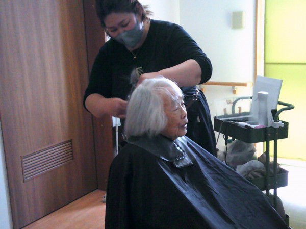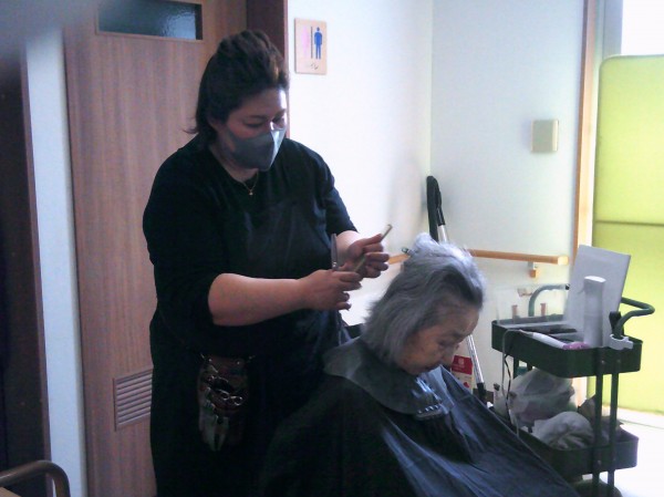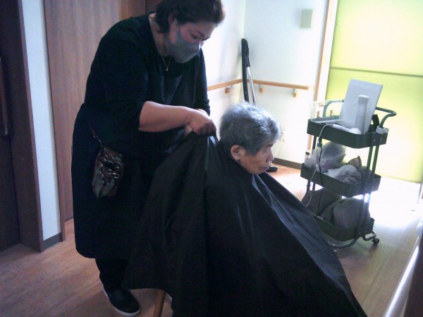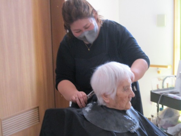今日は訪問美容の方が来られカットをして下さいました。そのご様子をお知らせいたします。