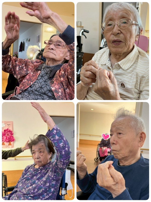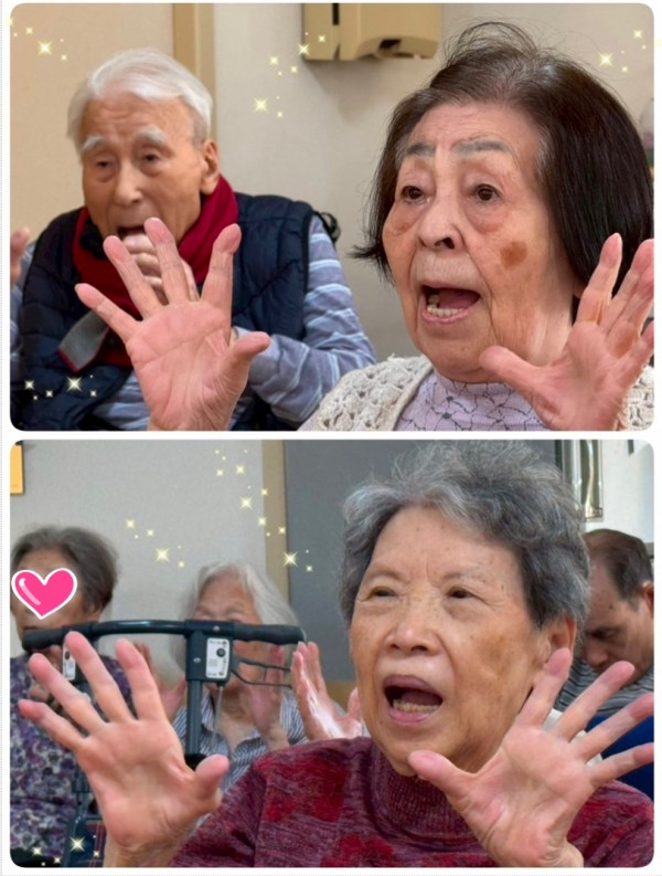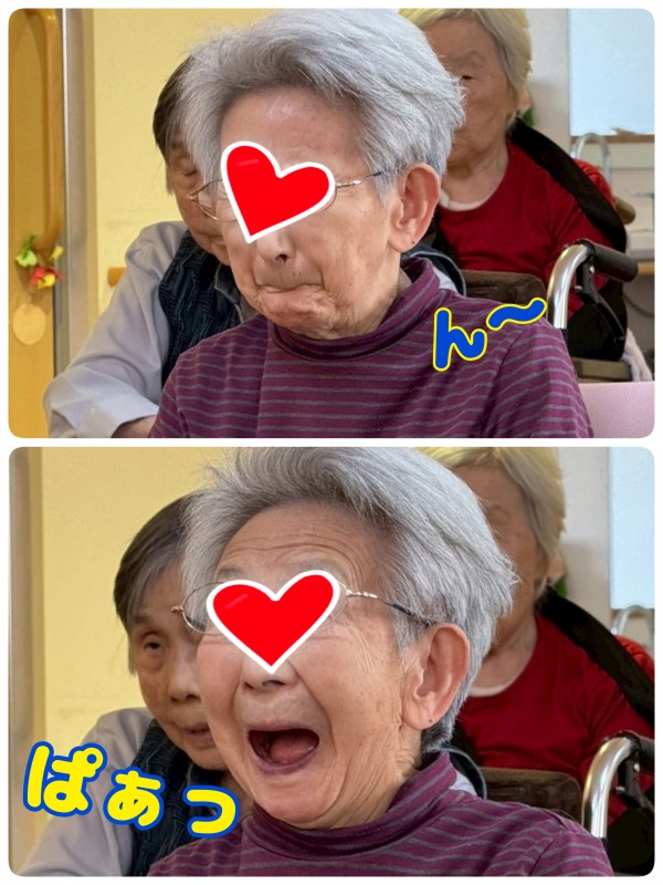 口腔体操でお顔やお口をいっぱい動かします。すると、お口の中にはジュワジュワと唾液が!
