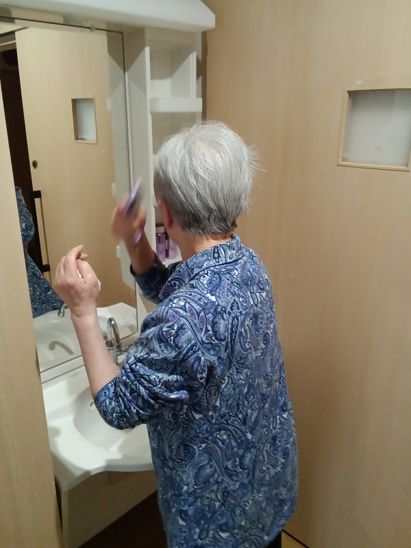 難しい方には、ホットタオルをご用意し拭いて頂きます。