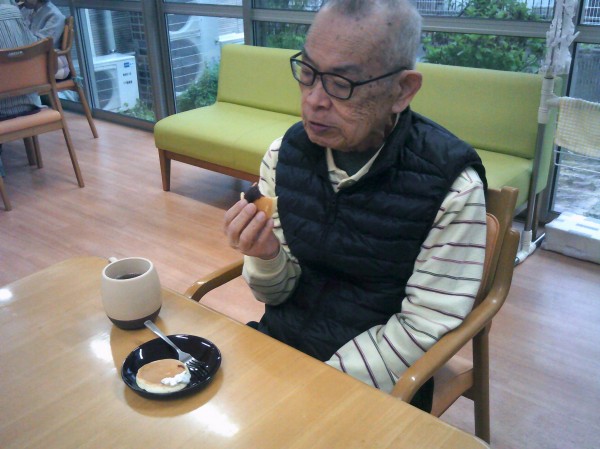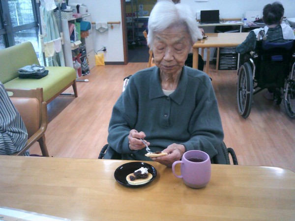 今日のおやつは手作りです。ホットケーキ作ってくれたの?? ありがとう!と喜んで下さいました(^0_0^)