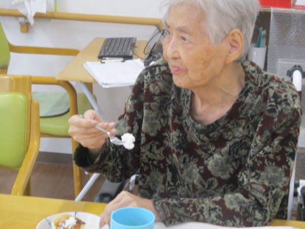 今日は2階・おやつにホットケーキを作りました! 召し上がられているご様子をお知らせいたします!