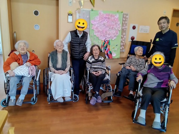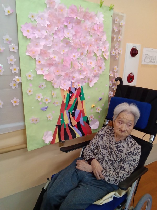グループホームみんなの家・中野鷺宮 「花の壁飾り」の前で
