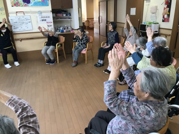 身体をほぐしたり声を出したりと楽しそうに参加されていました。