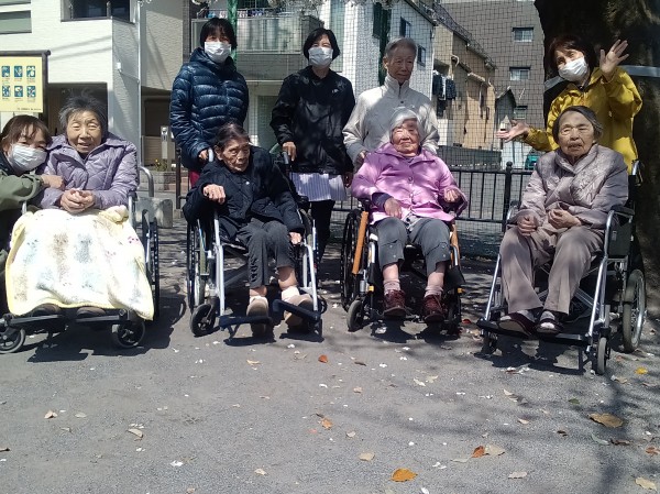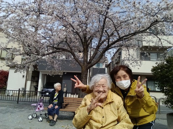 春の日差しと桜の香りに誘われて3階のみなさんとお花見。