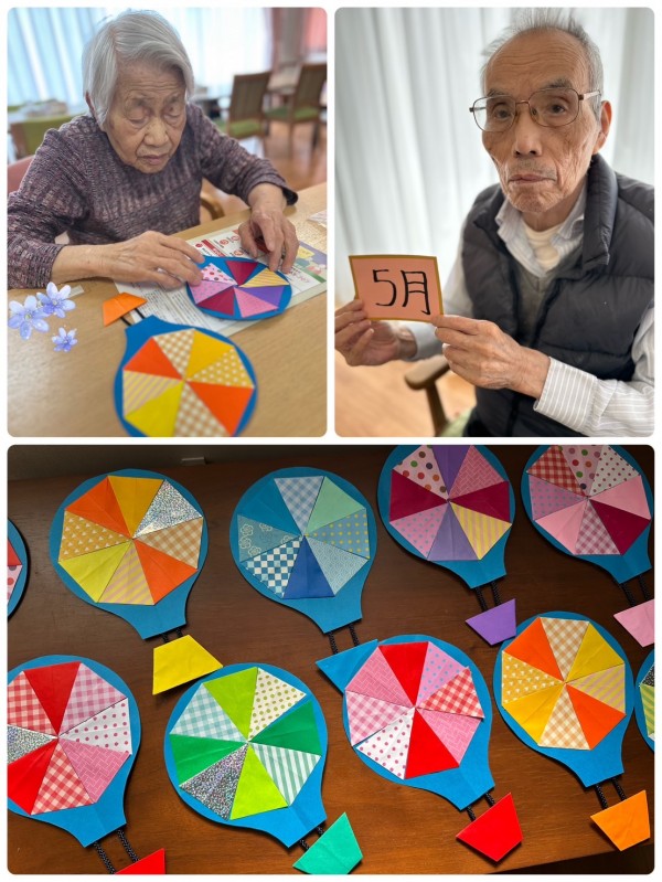 型紙を使って、色画用紙や折り紙などで『気球』を作りました♡