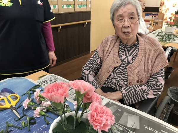 母の日にちなんでカーネーション、スプレーカーネーション、スターチス