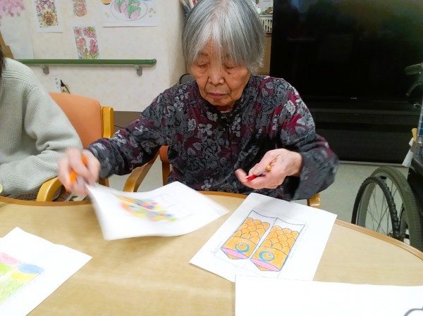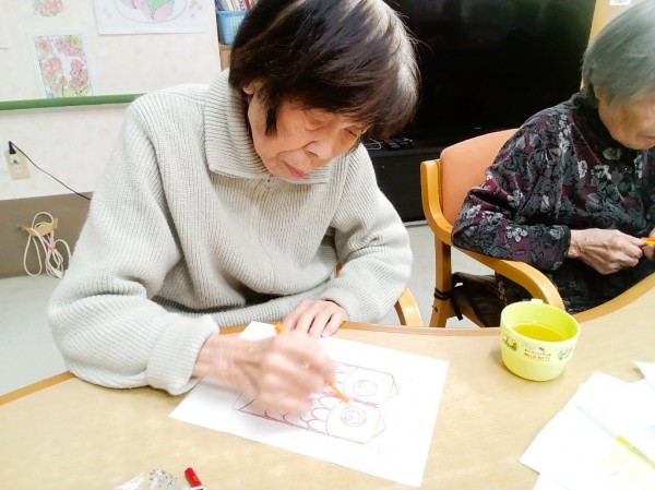 真剣なお顔で、塗り絵中!!「鯉のぼりって何色?」「見たことないから分からない」