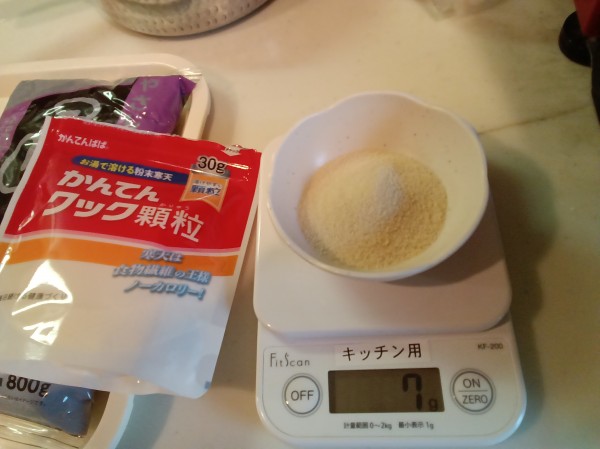 寒天は食物繊維の塊で、沸騰させて完全に煮溶かすことで、冷めるときに繊維質が水分を絡めとるのでプルプルに固まるのだそう。