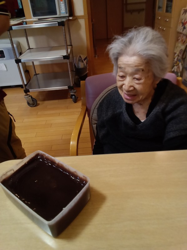 ……という話を入居者の皆さんにしたところ、かなりの大ウケで、話の流れで「たまには大きい羊羹食べたい」という事に。