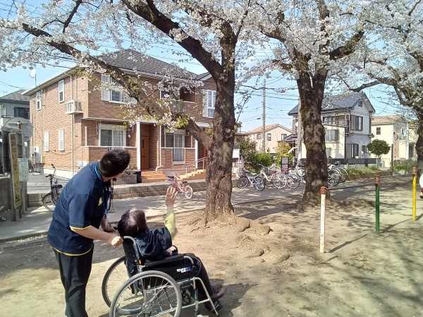 桜を見上げる後ろ姿が、、、素敵です( *´艸`)