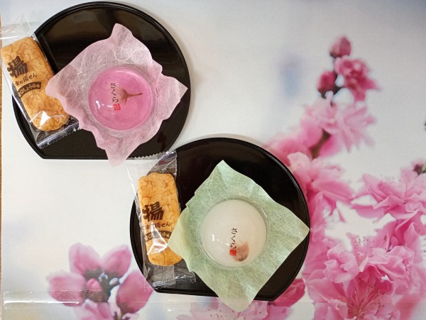 昨日、おやつレクとして春らしいサクラを使ったゼリーを提供させていただきました。