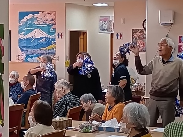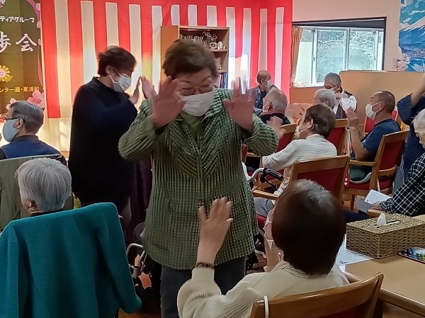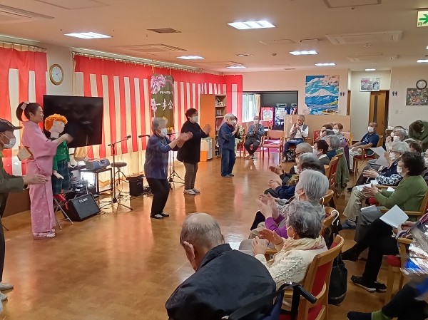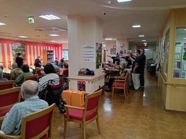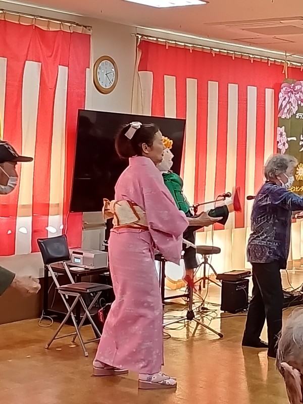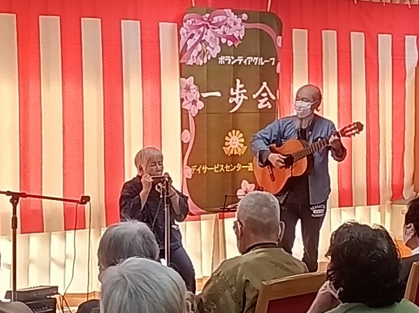 その他、「スバル」「あざみの歌」を聴かせて下さいました。その盛り上がりがとてつもなく、ご利用者様・「一歩会」さん・職員皆で踊りながら応援しました(笑)!