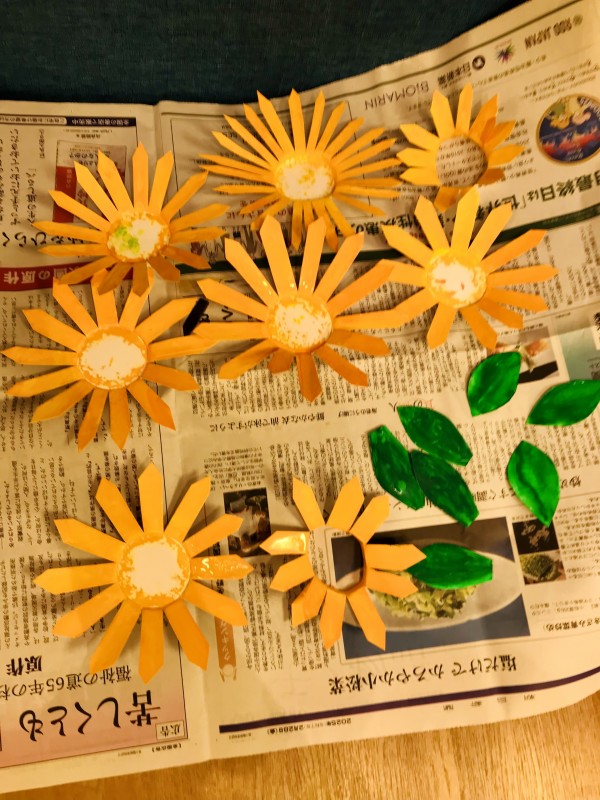 紙コップをお花のようにカットし開いていきます(๑˃̵ᴗ˂̵)