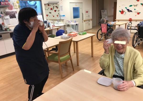 こちらのご利用者様達は紙コップで「糸電話」を作り懐かしい遊びをされていました(๑˃̵ᴗ˂̵)