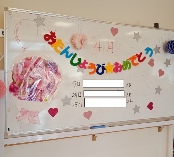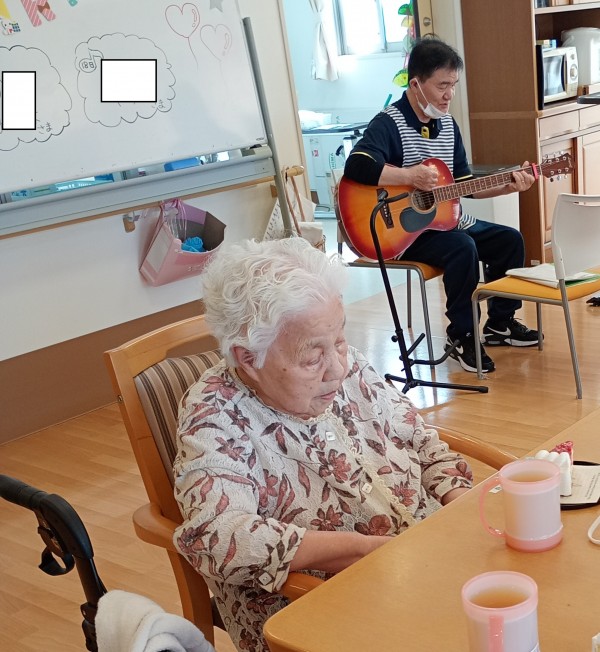 今月は7名の方が、お誕生日を迎えられ、職員のギターによる伴奏のもと、みんなでハッピーバースデーの歌をうたってお祝いをしました。