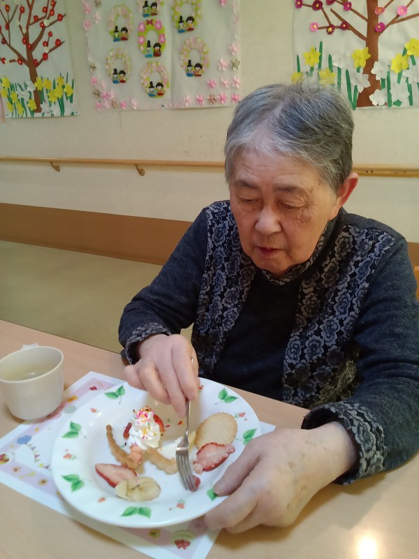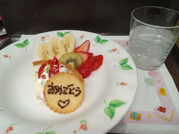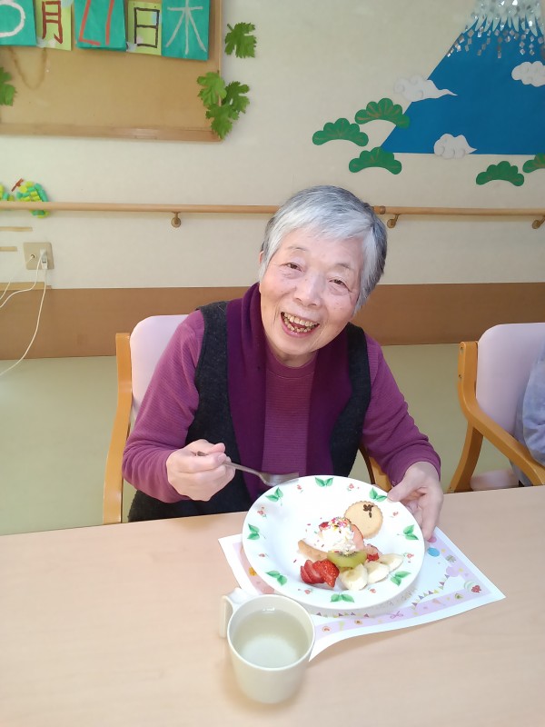 スタッフ手作りのチーズケーキフルーツ添えを美味しそうに召し上がりました
