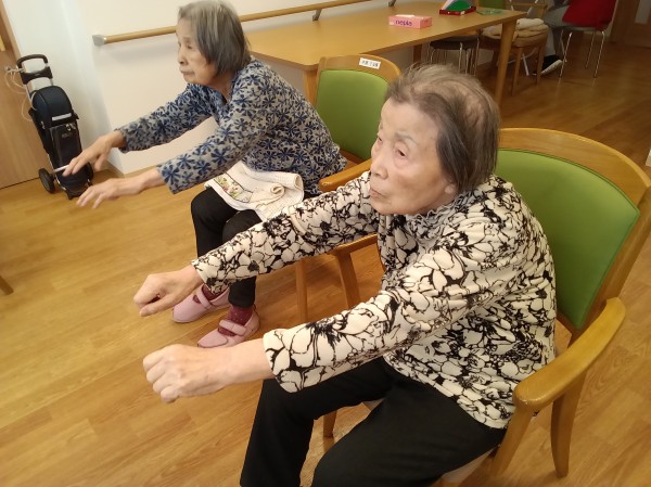 普段あまりやらない人も、一生懸命に手足を動かしたり伸ばしたりして体操にいそしみます!