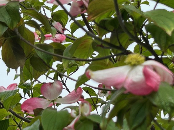 近隣では、八重桜が可愛く咲いています。八重桜は、花びらが複数に重なってボタン桜ともいわれています。