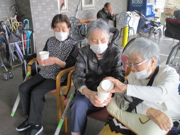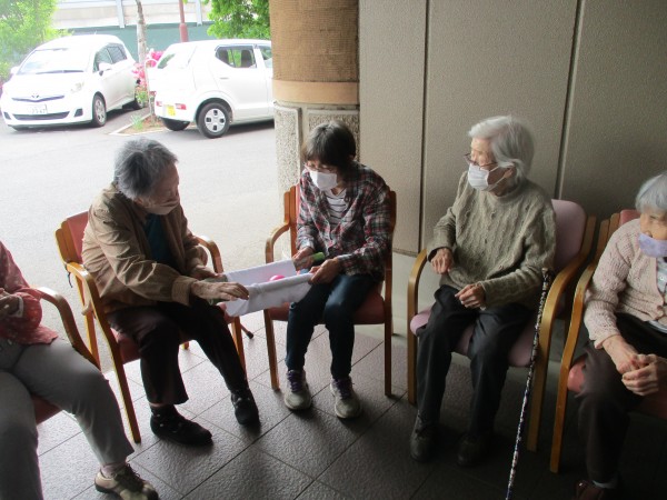 春の陽気に誘われて、本日はお外で午後のレクリエーションを行いました。