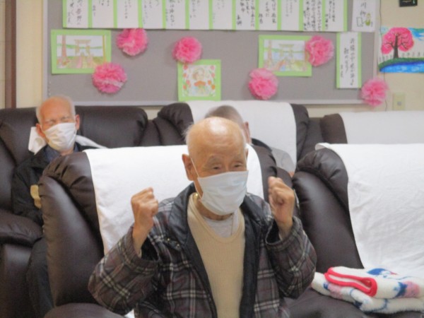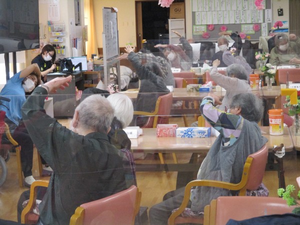 軽快な音楽に合わせて、手足を動かしたり、リズムに乗って全身を動かしたり…。いつもとは少し違う運動に、皆様、ノリノリで参加されていらっしゃいました。